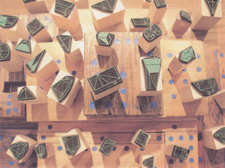 直に言葉が載ると思うと話しづらいのですが、このハンコを作っていて一番感じるのは、作品を完成させることよりも「こういうことが出来るんじゃないか」と考えているときが何よりも幸せだということです。ですから、皆さんが私の作品から何らかの可能性を感じ取って、自分ならこういう風にするとか、ああいう事が出来るのではなど、そんな風に考える時間をもってもらえたら嬉しいですね。 |