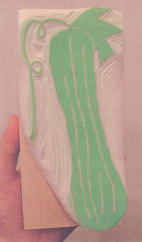 ○片岡さん、まずどのようなきっかけでゴム版制作を始められたのでしょうか? 元々、美大で彫刻を専攻していたのですが、卒業してからはいろいろアルバイトをしていたんです。その頃に受けたデザインの仕事で作った小さなハンコが知人の目に留まり、ゴム版作りをはじめました。その後、色々な人と出会いを通してイベントなどに作品を出させて頂き、徐々に自分でもゴム版のワークショップや展覧会を開くようになったんです。 |