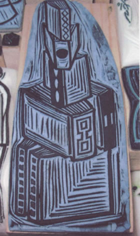 First I make a rough sketch on paper. Then, I print the image of the drawing on a rubber plate and start carving it out slowly, leaving the lines which will be inked-up later. Iuse a design knife for that. Also I give workshops where I introduce to people the 'how-to carve'. |